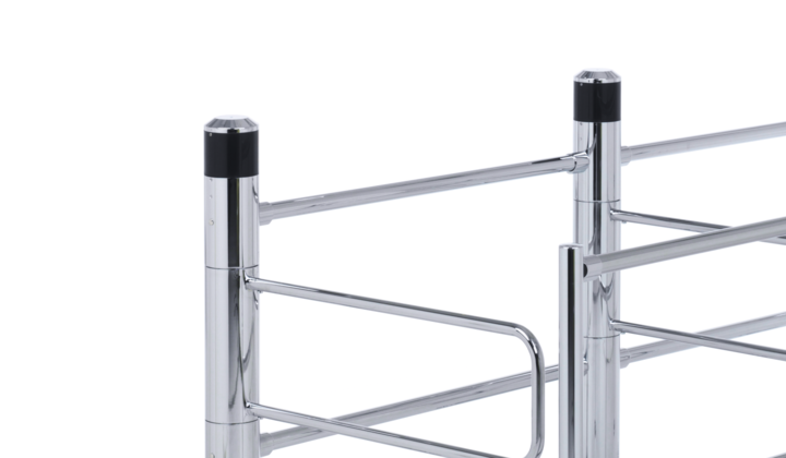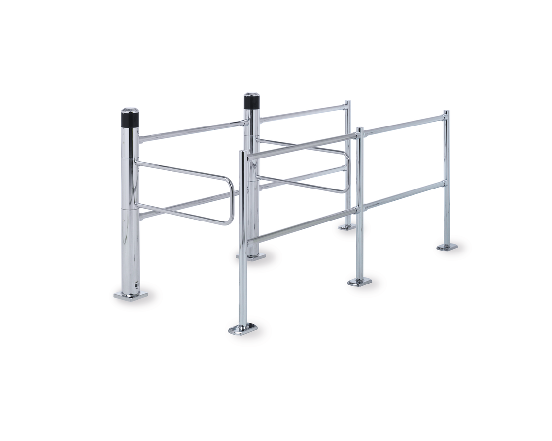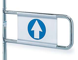 Montant et bras pivotant Classic en tube d’acier, finitions de surface sur demande. Mécanisme de pivotement complètement intégré dans le montant pour une réduction importante des risques de blessure. Panneau indicateur en plastique blanc ou en verre acrylique transparent, avec indications de chaque côté.