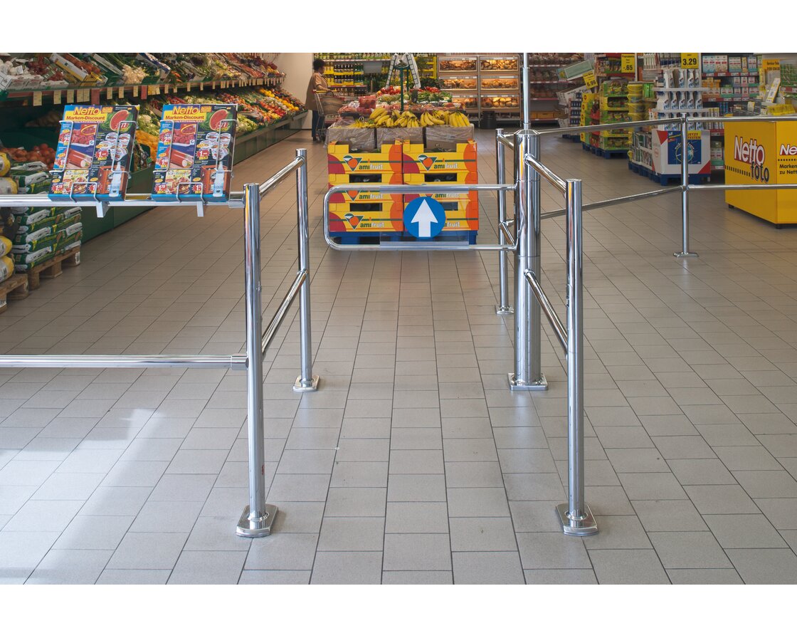 Les installations d’entrée Ecoport de Wanzl sont équipées de toutes les fonctions dont vous avez besoin au quotidien : fonctionnement fiable, technologie durable, accès possible pour tous les clients, même ceux à mobilité réduite, et système antipanique en font bien entendu partie.
