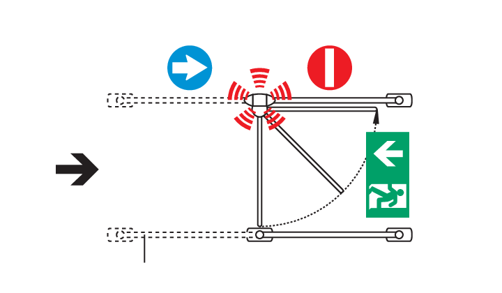 En cas d’urgence, le bras s’ouvre dans le sens de la sortie.