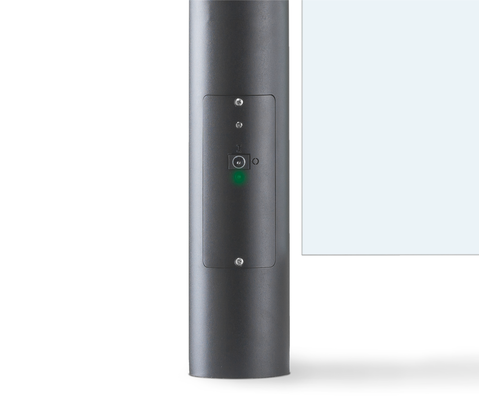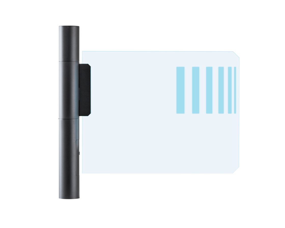 Une fois que le lecteur RFID, le radar ou le boîtier de commande valide l’accès, le bras pivotant s’ouvre dans le sens du passage. Des capteurs placés des deux côtés détectent le sens par lequel la personne arrive. Une fois que l’utilisateur est passé, le bras pivotant se referme complètement. Les capteurs intégrés surveillent le passage lorsque le bras est ouvert et fermé. Les LED placées dans la coupole en verre et dans le bras pivotant en verre de sécurité signalent tout accès validé et toute manipulation. Les tentatives de manipulation ainsi que les accès non autorisés sont empêchés et signalés par une alarme.