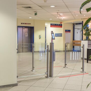 Sécurité sanitaire garantie : la clinique de Herford fait confiance à la prévention des infections fiable offerte par le Galaxyport Protect de Wanzl