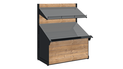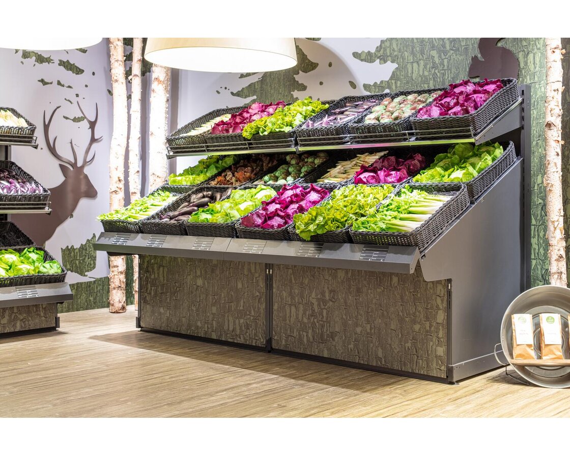 Vitable incite à l’achat ! Vous souhaitez un îlot promotionnel qui booste les ventes pour le vinaigre et l’huile à côté de la salade ? Aucun problème. Vitable propose plusieurs modules qui s’accrochent grâce à une poignée et qui peuvent être immédiatement approvisionnés en produits incitatifs. De plus, les parois arrière peuvent être décorées librement afin que le client n’oublie pas le steak juteux malgré toute cette salade.
