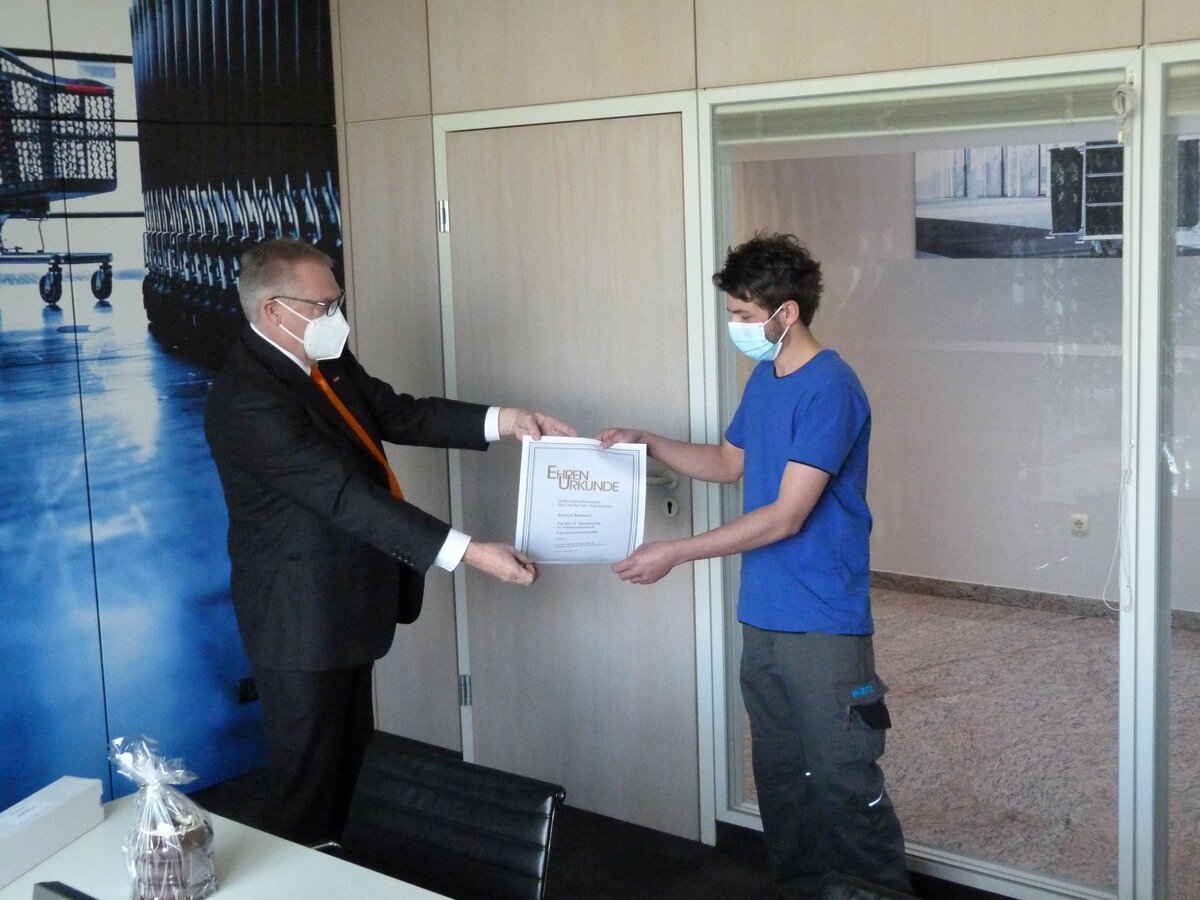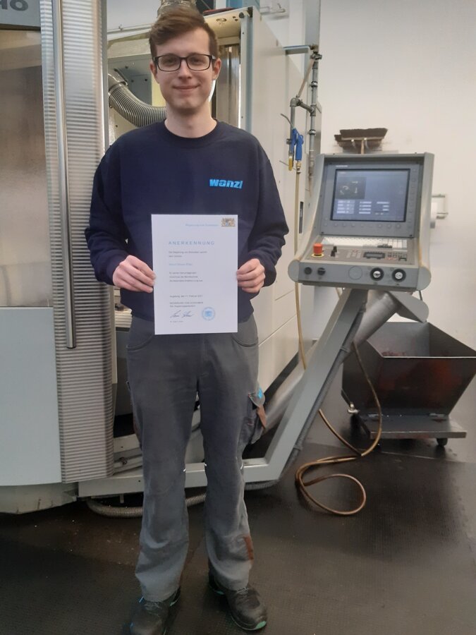 La straordinaria prestazione di Samuel Morhard risale a qualche tempo fa ma merita una menzione particolare. Infatti, in occasione del concorso nazionale, nell'ottobre 2020 si è aggiudicato il terzo posto tra gli apprendisti nel settore della meccanica di precisione: non era mai successo in Wanzl! "La gioia è stata grande quando, dopo tre anni e mezzo di formazione professionale, ho ricevuto il sospirato certificato di attitudine professionale. È stata per me anche una grande soddisfazione il fatto che il Presidente dell'Artigianato svevo, Hans-Peter Rauch, mi abbia dedicato del tempo per congratularsi personalmente con me all'inizio dell'anno", afferma con orgoglio Morhard. Consiglia a tutti i futuri apprendisti di appassionarsi al loro settore di competenza anche nella vita di tutti i giorni e di imparare a non perdere la calma in situazioni stressanti. Anche lui vuole proseguire la sua formazione. "Il mio prossimo obiettivo è quello di continuare a studiare per diventare tecnico meccanico abilitato", spiega Morhard.