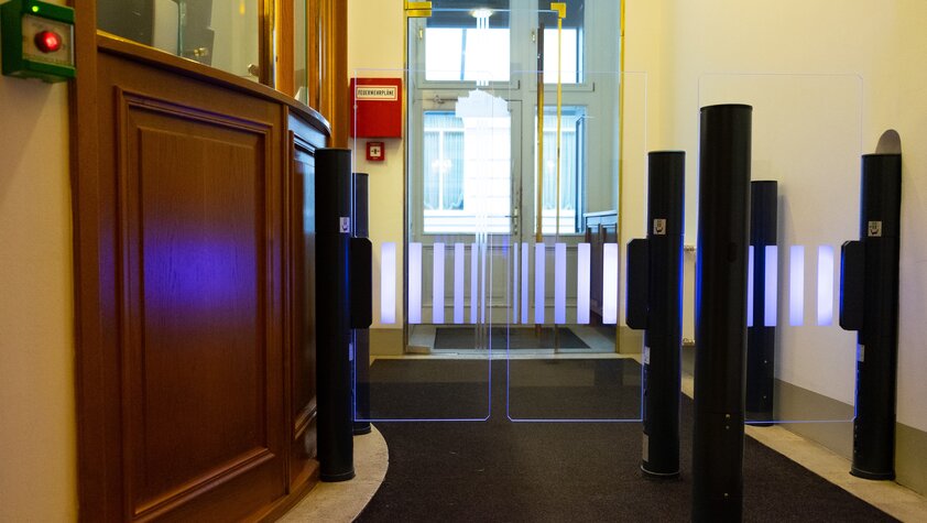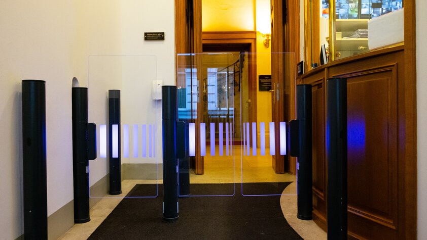 Un braccio girevole trasparente in vetro temperato ESG e una sottile colonna in acciaio inox rivestita in grigio antracite: con questo design sobrio e moderno, i Galaxyport si inseriscono discretamente nell'area di ingresso del Musikverein. "L'intero sistema a due passaggi è stato configurato su misura per le esigenze del Musikverein. Due diverse larghezze di passaggio garantiscono la massima accessibilità possibile nonostante gli spazi ristretti", spiega Daniel Elsner. L'illuminazione a LED dei bracci girevoli segnala lo stato di funzionamento e di abilitazione. I bracci girevoli si aprono in due direzioni, dove la direzione di apertura viene riconosciuta dalle colonne di scansione anteriori. Ogni dipendente dell'edificio dispone di una propria scheda RFID che consente l'accesso o l'uscita attraverso il sistema. Artisti e visitatori, invece, vengono autorizzati a entrare nell'edificio dal portiere che ricorre al quadro di comando o al radiocomando. "L'impianto deve essere il più semplice possibile da un lato e intuitivo dall'altro. Per questo motivo, ogni passaggio è dotato di colonne di scansione RFID separate. Le preoccupazioni iniziali legate alle nuove condizioni sono scomparse in brevissimo tempo grazie alla facilità d'uso e alla maggior sicurezza", afferma Renate Futterknecht.