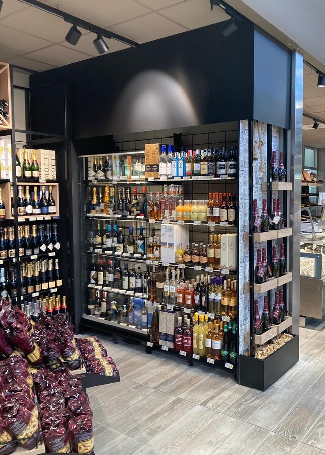 A conferma di quanto descritto, anche il reparto vini è uno degli esempi più evidenti arricchito di dettagli e punti focali con l’assortimento di vini pregiati e del territorio in grado di portare il cliente in un’esperienza unica ed immersiva.