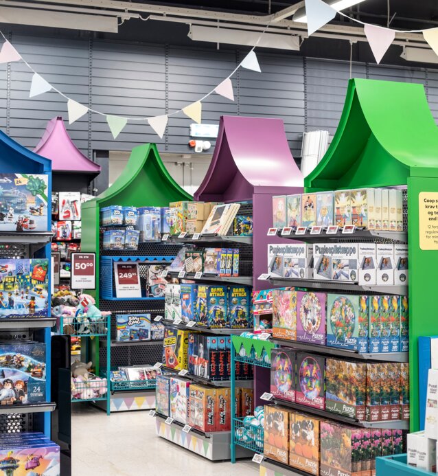 Ofte tar utviklingen av et nytt shop-in-shop-konsept utgangspunkt i et helt butikkonsept, der bare en del av butikkinventaret brukes. Det velges nøye ut hvilket sortiment in-shop-en skal inneholde. Våre designere har stor erfaring med å få inventardesignen til å fungere i praksis både i butikk og in-shop.