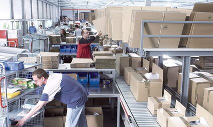 Hos Rossmann på netthandelslageret: «Pick-to-light»-traller med mye ekstra