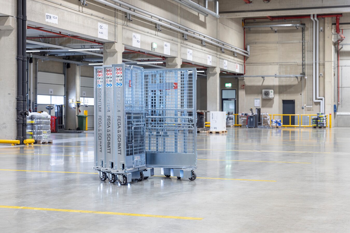 Bij het tot nu toe gebruikelijke proces werden dagelijks beeldschermen, lampen en koelkasten op europallets gezet en met een stretchfolie omwikkeld. Vervolgens werden de pallets door verschillende expeditiebedrijven opgehaald en naar het regionale distributiecentrum gebracht. Van daaruit werden de pakketten in de betreffende transportwagens geladen. Dit moest worden geoptimaliseerd. De artikelen uit het centrale magazijn in Heilsbronn zullen voortaan in rolcontainers en rekken naar de distributiecentra getransporteerd worden. Een onderzoek naar laadmiddelen bracht FEGA & Schmitt op Wanzl. "De referenties en het veelzijdige assortiment hebben indruk gemaakt. Na de contactopname met Wanzl Account Manager Anna Fischer heeft de klantenservice ons meteen overtuigd", zegt Huber. Ook voor Wanzl is de samenwerking belangrijk. Cassandra Hieber, productmanagement Digital Solutions Material Handling & Retail en projectverantwoordelijke voor Asset Tracking, legt uit: "Wanzl treedt op als aanbieder van oplossingen voor de optimalisatie van het complete verzendproces, van de conceptontwikkeling, de screening van leveranciers in het partnernetwerk tot en met het projectmanagement, de scholing van de medewerkers bij de klant en uiteindelijk de rolloutbegeleiding." Met de rolcontainer voor pakketten van Wanzl krijgt FEGA & Schmitt een oplossing voor al hun wensen geboden. "Beschadiging van de pakketten wordt voorkomen, het transport op de vrachtwagen is ruimtebesparend mogelijk, wij besparen bij verpakkingshulpmiddelen zoals folie, het transport naar de afzonderlijke locaties verloopt sneller en de processtappen worden gestroomlijnd", aldus Huber. Bovendien voorkomen beschermplaten beschadigingen van de wielen bij het transport met vorkheftrucks en de aan vier zijden gesloten constructie zorgt voor een optimale zekering van de lading. De vastzetinrichting voorkomt ten slotte het wegrollen bij het laden en lossen. Het draagvermogen bedraagt 500 kilo.