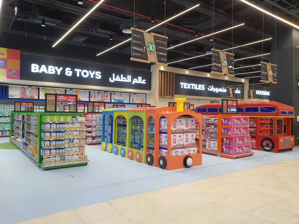 Planowanie i projektowanie tego atrakcyjnego miejsca w nowym centrum handlowym zajęło sześć miesięcy, a realizacja trwała kolejne dziesięć miesięcy. Kwestia Customer Experience stanowi klucz do koncepcji designu firmy Wanzl, ponieważ główne obszary sklepu są oznakowane tematycznie zgodnie z designem specyficznym dla danego produktu. W ten sposób tworzymy wyjątkową atmosferę, która budzi ciekawość klientów. Analogicznie do tego koncepcja oświetlenia opiera się na oddzieleniu różnych obszarów przez różne opcje CCT (Correlated Color Temperature) i poziomy oświetlenia. Sekcje towaru są opisane w języku arabskim i angielskim. Pan Ahuja podsumowuje ideę projektu w następujący sposób: „Dla wielu klientów w tym regionie główną atrakcją jest zakup w sklepie stacjonarnym produktów, które na własne oczy widzą i poznają. Doceniają oni też przyjemną atmosferę sklepu”.