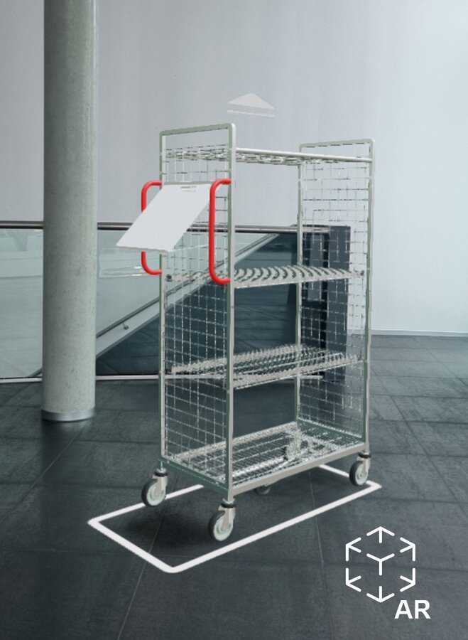 Förutom områdena påbyggnad, våningsplan och tillbehör erbjuder konfiguratorn ytterligare fördelar. I området ”Extra” kan du välja ytterligare element för en vagn med särskilda krav: Kunden kan lägga till olika delar – allt från antistatiskt band till klädstång. Tillbehören finns i anslutning till stycklistan. Med hjälp av augmented reality erbjuder konfiguratorn möjligheten att visa vagnen i ett verkligt utrymme. Denna tjänst är enkel att använda via din smartphone eller surfplatta. Med endast en knapptryckning visar konfiguratorn dessutom en passande stycklista eller måtten på den vagn du skapat.