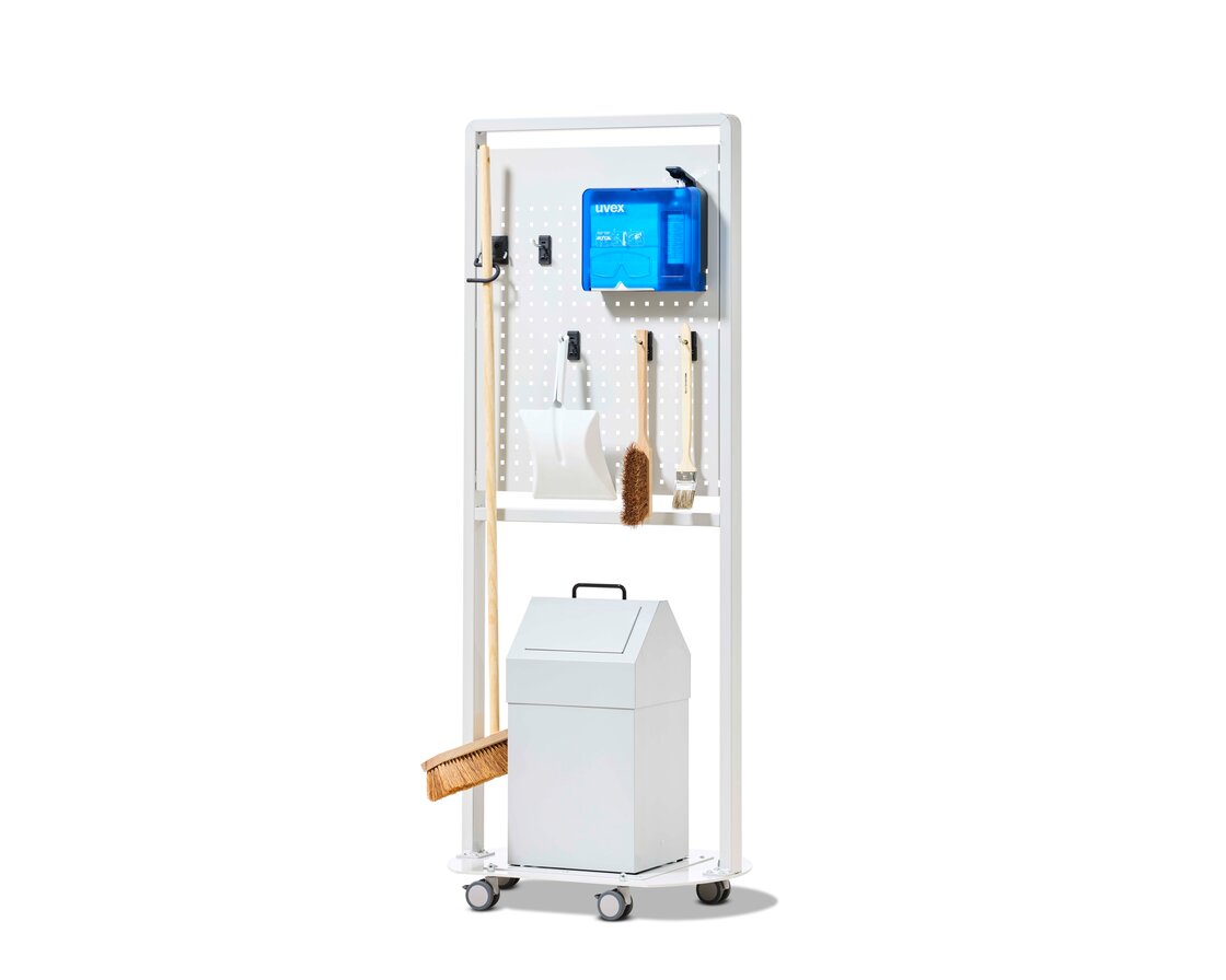 Ordning, reda och säkerhet på enkelt sätt. Mobil rengöringsstation för hög effektivitet och användarvänlighet eftersom nödvändiga rengöringsverktyg alltid finns nära till hands. Användningsområden i lager- och produktionslokaler samt i försäljningslokaler. Allt-i-ett-lösningen för rena resultat!
