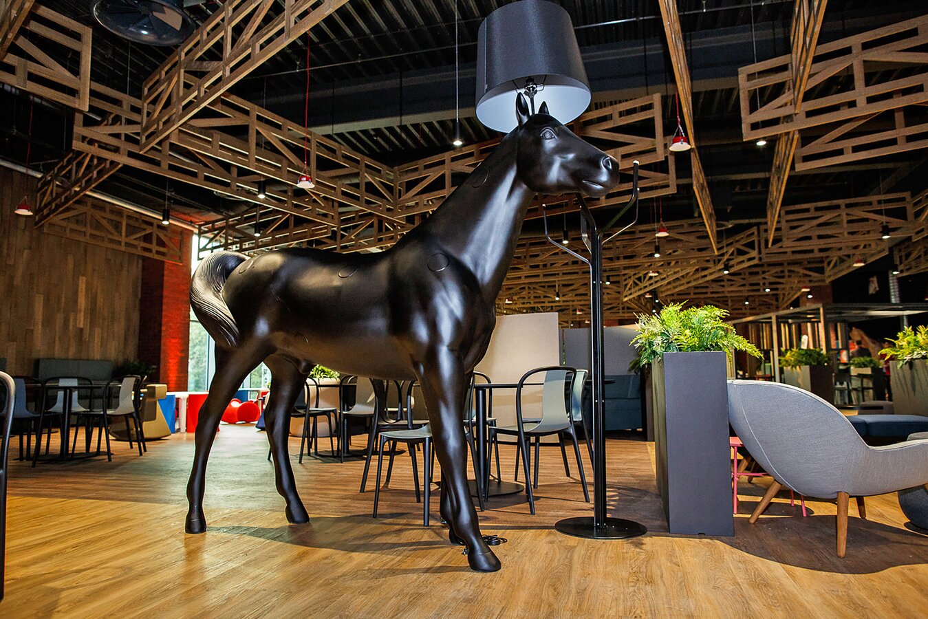 Med en hästskulptur och stängsel i taket framhäver bistron än en gång namnet på shoppingcentret. Dessutom bidrar en stor fönsterfront och många gröna växter till en ovanligt inbjudande atmosfär. I produktsortimentet läggs stor vikt på fräschhet och naturlighet, vilket på ett perfekt sätt lyfts fram med YourTable och Vitable.