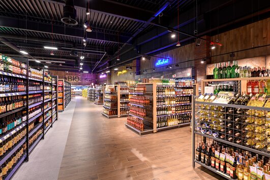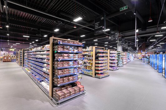 Särskilt iögonfallande är de breda gångarna, den sofistikerade belysningen samt den utomordentligt stora produktmångfalden i den knappt 3 000 kvm stora butiken.