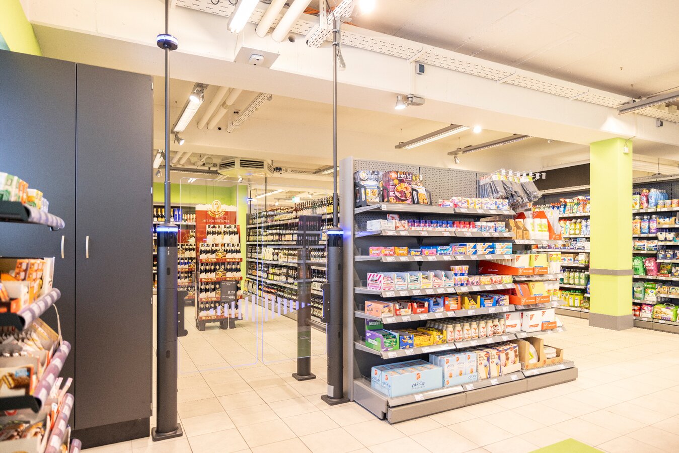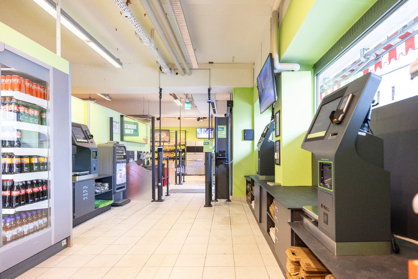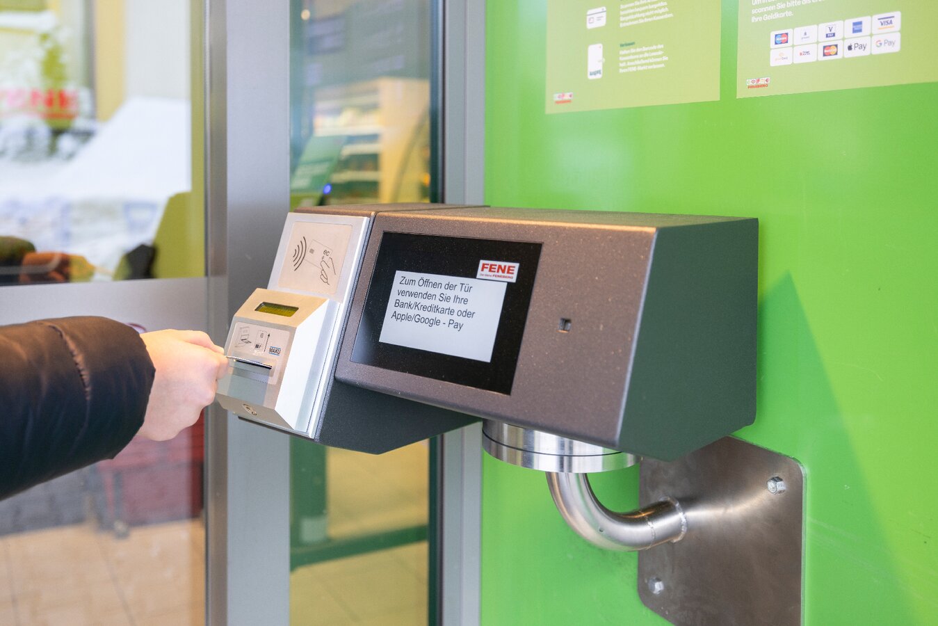 Алкогольні напої в оберштауфенському FENE розташовані в окремій зоні, до якої мають доступ покупці віком від 18 років. До неї можна потрапити, лише пройшовши автентифікацію, через посвідчення особи чи водійське посвідчення, на іншій вхідній системі Wanzl із надвисокими поворотними стулками з одношарового безпечного скла та датчиками захисту від переступання та пролізання під стулками. За потреби датчики активують сигнал тривоги. Сумісність касової системи забезпечує власне рішення ІТ-відділу групи компаній EDEKA, до якої приєднана мережа Feneberg. Керування та контроль різних процесів у магазині відбуваються централізовано в цифровому режимі через хмарну платформу wanzl connect®. Доступ до wanzl connect®, звичайно, має оператор магазину, він може в реальному часі переглядати анонімізований підрахунок відвідувачів у режимі роботи без персоналу через інтуїтивно зрозумілу платформу або керувати освітленням. Це заощаджує витрати на трудомісткі ручні процеси на місці. Клієнти можуть вільно пересуватися по магазину та робити покупки майже так само, як у звичайному супермаркеті. Одразу біля входу можна знайти практичні кошики для покупок виробництва Wanzl. У магазині клієнтам доступний широкий вибір свіжих продуктів, як-от фрукти, овочі, м’ясо, ковбасні вироби та випічка з модуля Wanzl Bake Off, напівфабрикати, продукти швидкого заморожування, предмети особистої гігієни та напої. Найбільшою особливістю є власні торгові марки Feneberg, які підкреслюють орієнтованість сімейного підприємства на регіон. Наприклад, усі продукти власної органічної марки VonHier походять із місцевості в радіусі 100 кілометрів від головного офісу компанії в Кемптені. Клієнт спочатку реєструє товар на одній із трьох кас самообслуговування і потім оплачує його безготівково. Для виходу з магазину потрібно лише відсканувати касовий чек, який підтверджує оплату. Потім поворотні стулки Wanzl ColourGate відчиняються, і клієнт виходить магазин. Це дає змогу керувати магазином без залучання персоналу. У магазині поки працюють співробітники. Вони пояснюють клієнтам нову концепцію та технологію. У майбутньому для забезпечення постійної доступності товарів можна буде використовувати також рішення на основі штучного інтелекту.