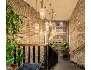 在室内的设计中也沿用了传统元素,以简洁时尚的浅色调为主,同深色的外立面既有形式上的呼应又有色彩上的对比。