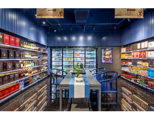 郑州金梭路店和餐饮,面积270m²,店铺形象全面做了升级,在色彩和品牌LOGO上进行了优化,升级后的酒便利被称为酒便利店铺的2.0版本,本次升级强调了空间定位的提升。