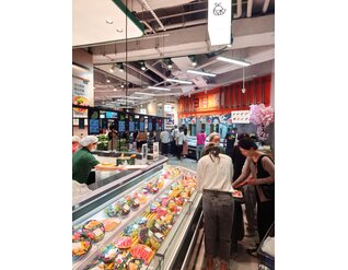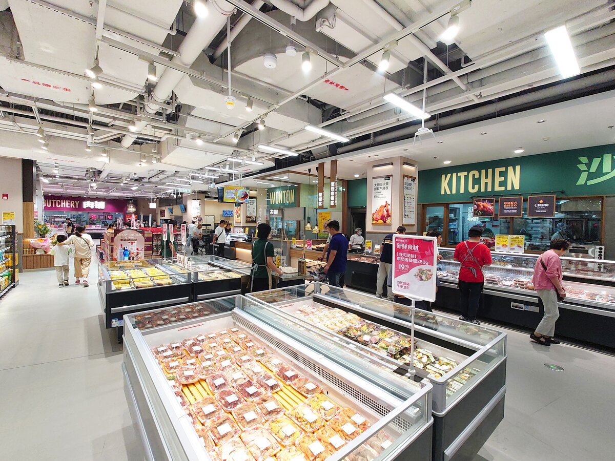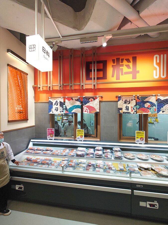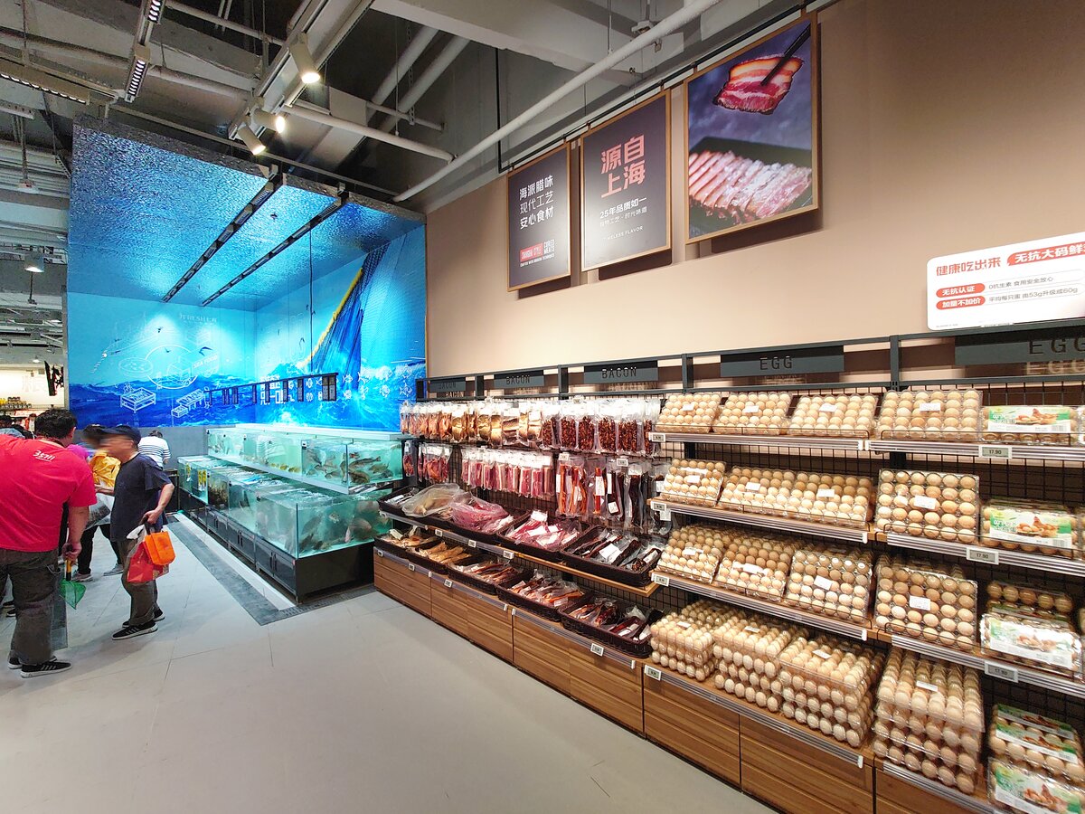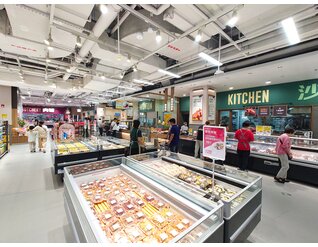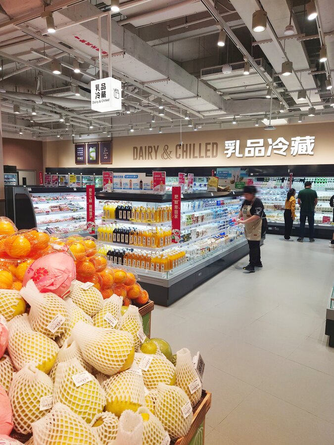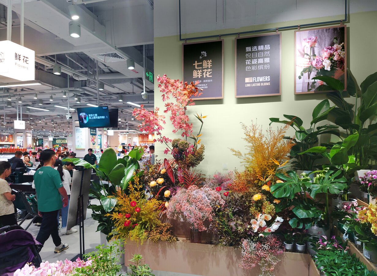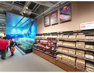 京东七鲜4.0于9月26日在长宁区的荟聚购物中心开设了上海新一家自营超市。 与京东七鲜3.0一样,它由旺众门店解决方案团队设计。