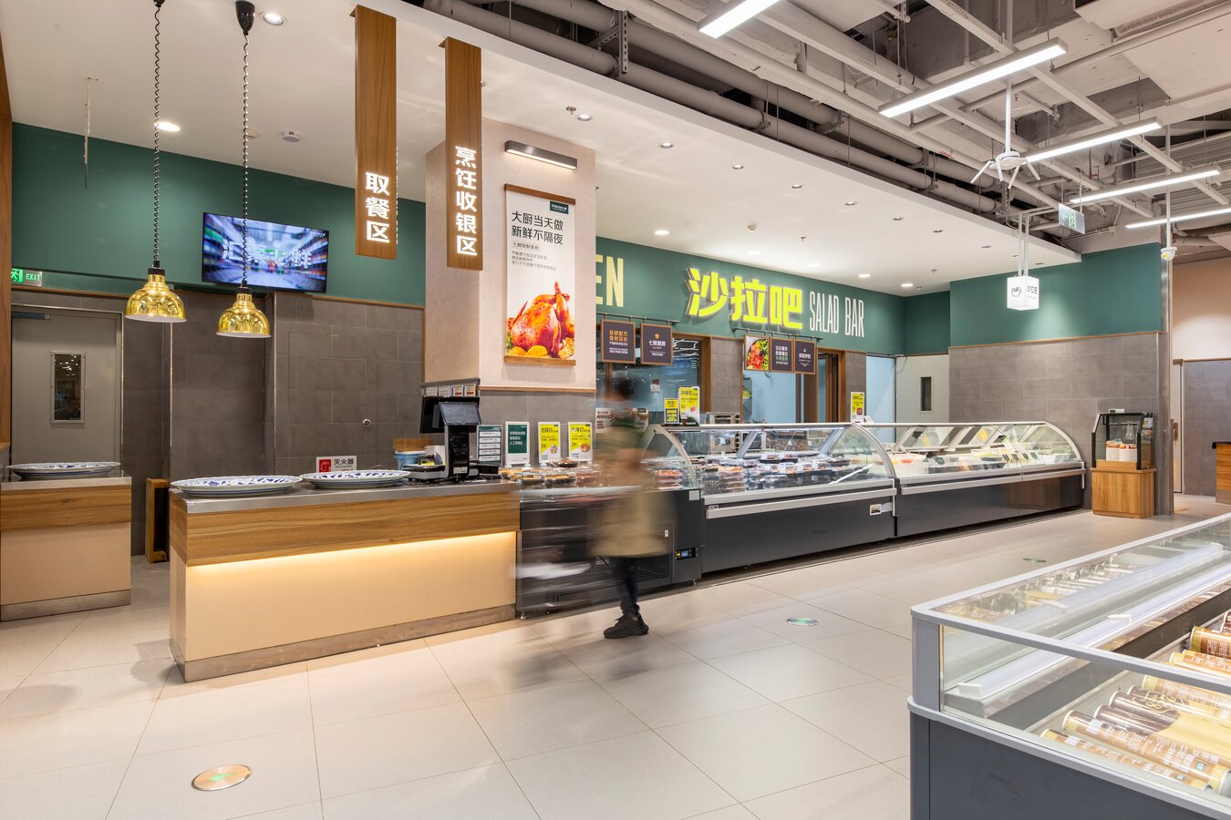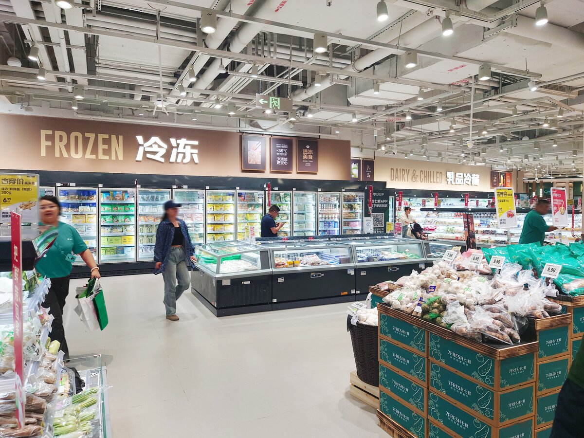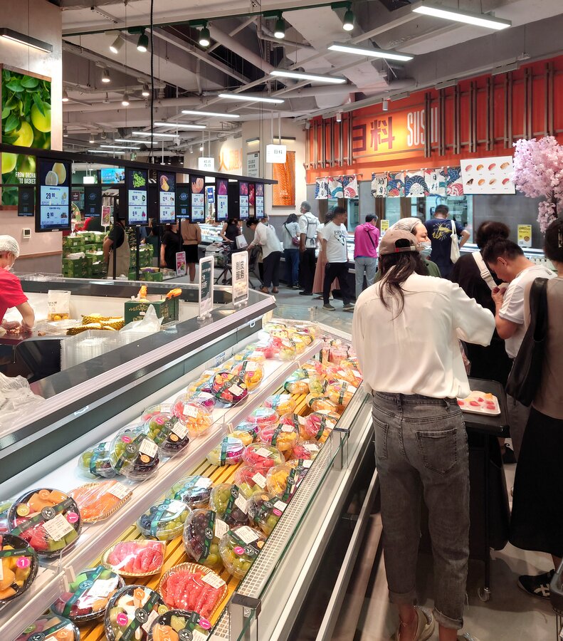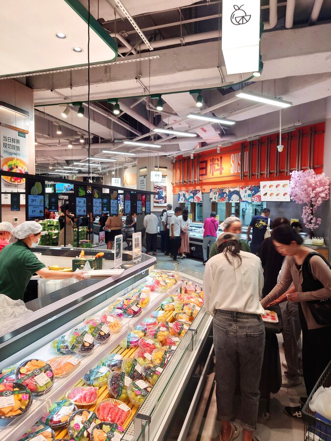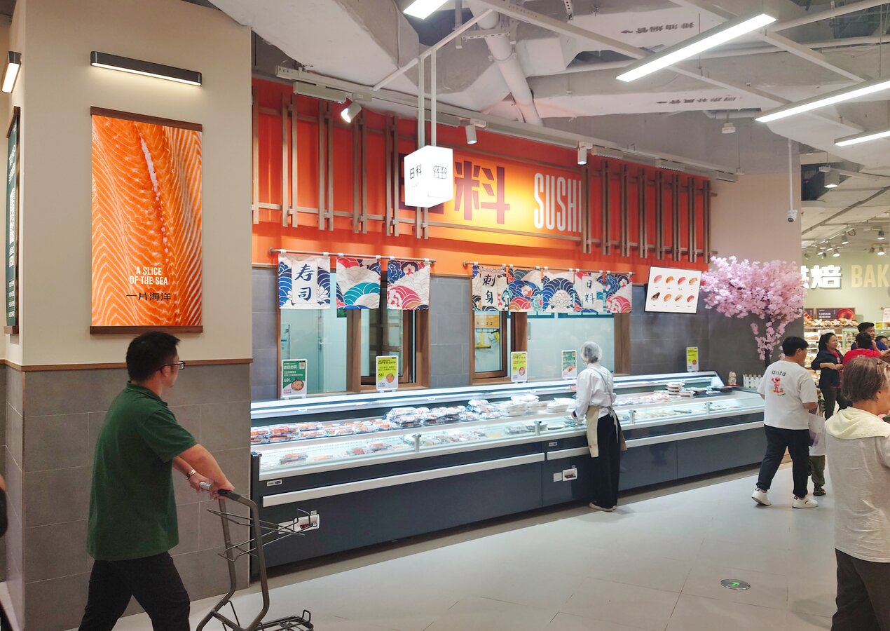 京东七鲜4.0于9月26日在长宁区的荟聚购物中心开设了上海新一家自营超市。 与京东七鲜3.0一样,它由旺众门店解决方案团队设计。