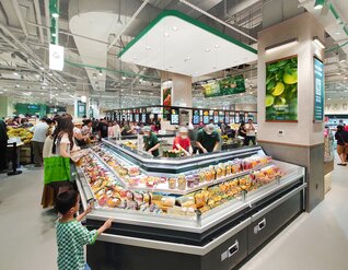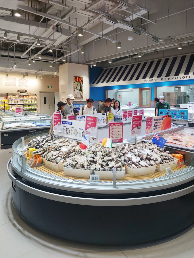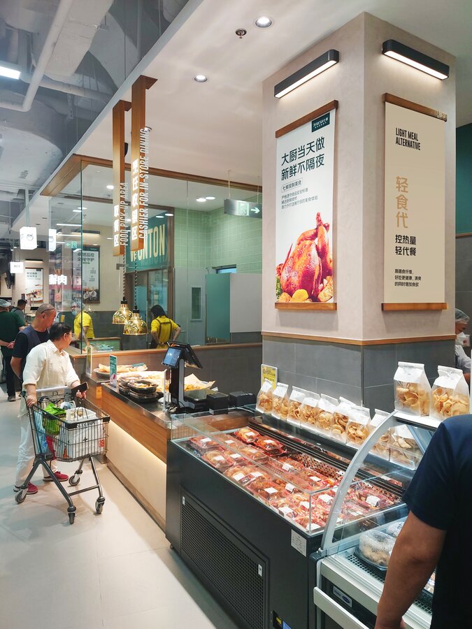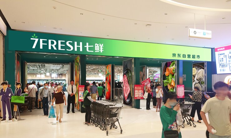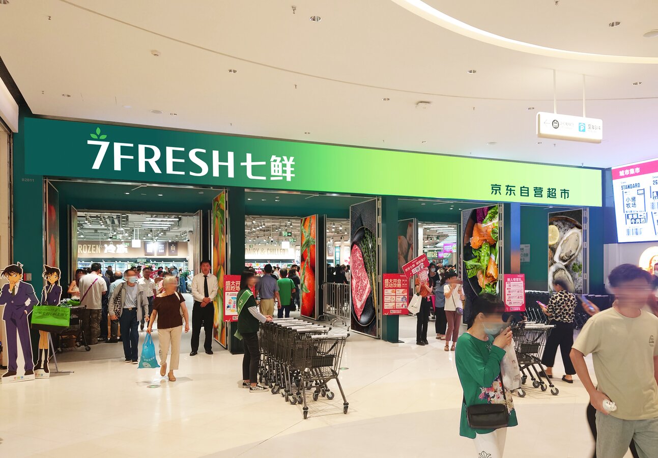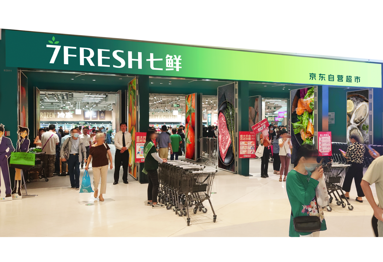 为了建立强大的品牌形象并赢得消费者的信任,京东提供了广泛的、以产品为中心的购物体验,并且产品更具性价比。七鲜荟聚店占地超过3300平方米,具有先进的零售效率,并在每一个品类中设有品尝站,以更好地向顾客介绍产品。